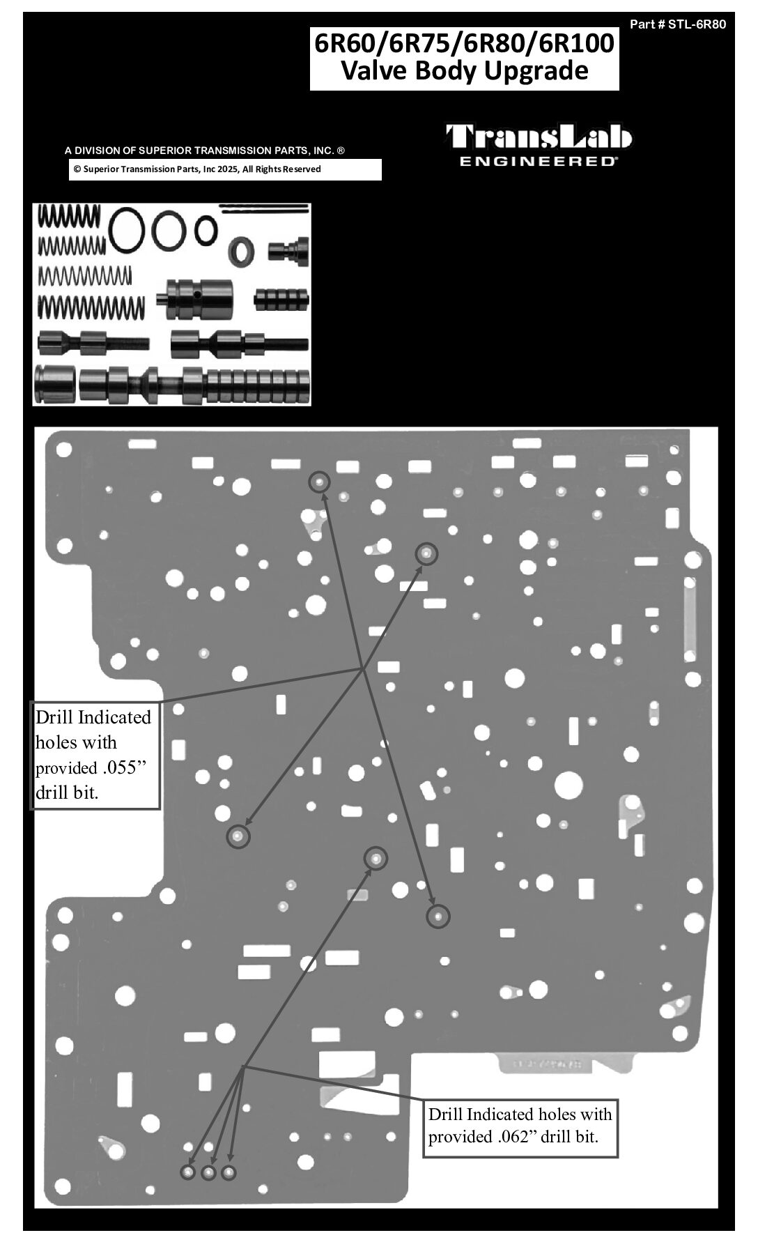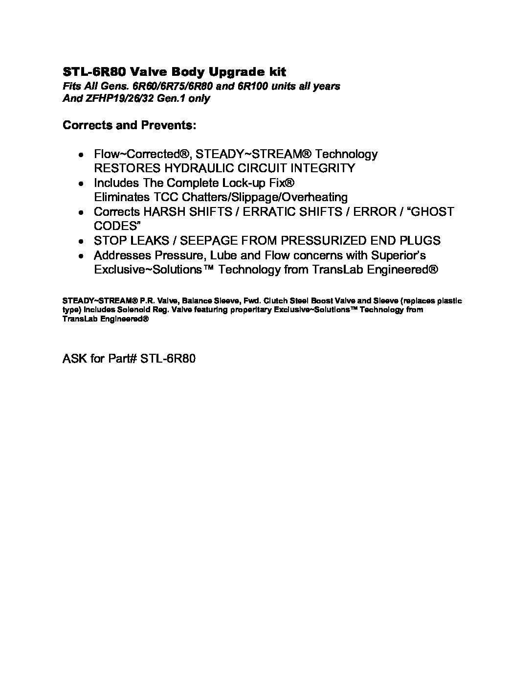 The New # STL-6R80 TransLab Engineered® Valve Body Upgrade kit (VBU™)